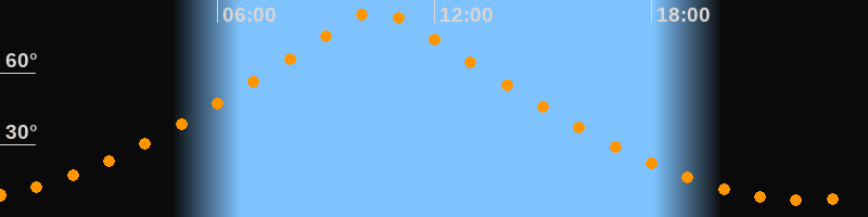 | Höchster Stand (Kulmination) | 10:24 Uhr (h = 85,7°) |
