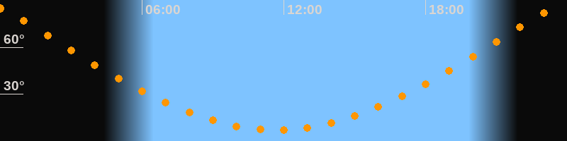 | Höchster Stand (Kulmination) | 23:41 Uhr (h = 85,7°) |