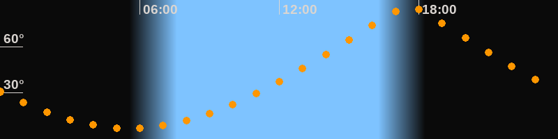 | Höchster Stand (Kulmination) | 17:34 Uhr (h = 85,7°) |