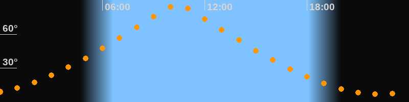 | Höchster Stand (Kulmination) | 10:23 Uhr (h = 85,7°) |