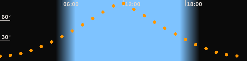| Höchster Stand (Kulmination) | 11:43 Uhr (h = 85,7°) |