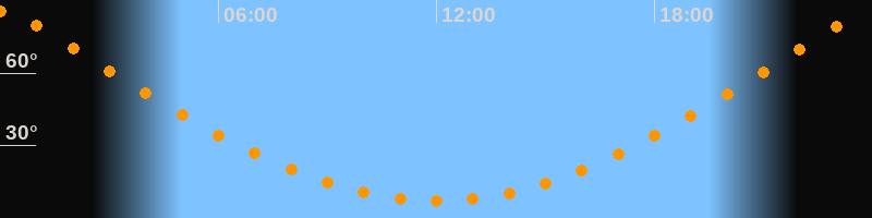 | Höchster Stand (Kulmination) | 23:59 Uhr (h = 85,7°) |