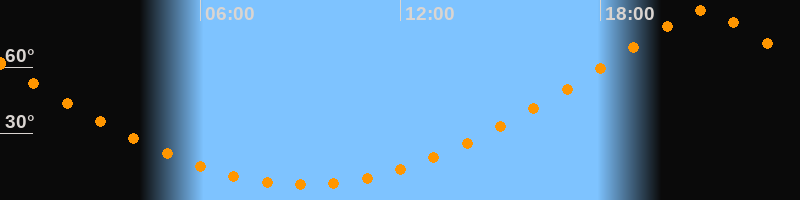 | Höchster Stand (Kulmination) | 21:06 Uhr (h = 85,7°) |
