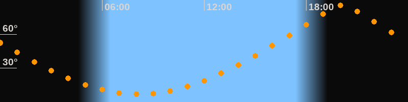 | Höchster Stand (Kulmination) | 20:07 Uhr (h = 85,7°) |