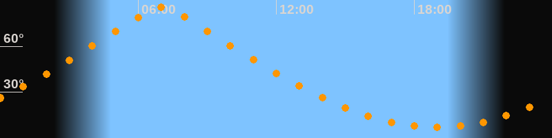 | Höchster Stand (Kulmination) | 07:01 Uhr (h = 85,7°) |