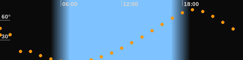 | Höchster Stand (Kulmination) | 19:09 Uhr (h = 75,8°) |