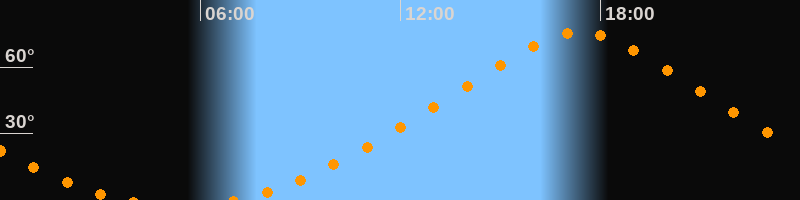 | Höchster Stand (Kulmination) | 17:23 Uhr (h = 75,8°) |