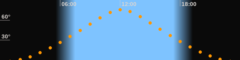 | Höchster Stand (Kulmination) | 12:05 Uhr (h = 75,8°) |