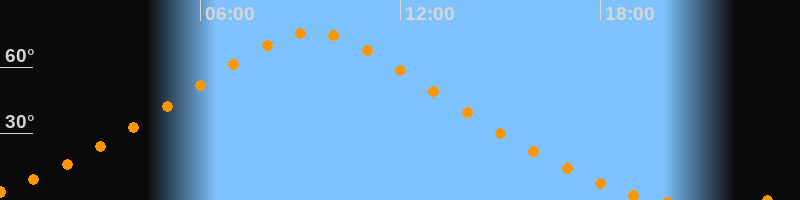 | Höchster Stand (Kulmination) | 09:21 Uhr (h = 75,8°) |