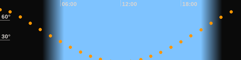 | Aufgang | 13:30 Uhr im Norden (αAz = 17,9°) |