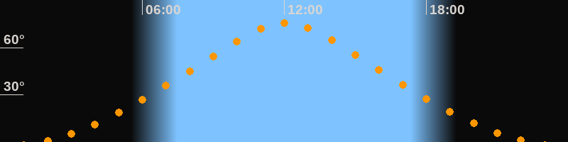 | Höchster Stand (Kulmination) | 12:02 Uhr (h = 75,8°) |
