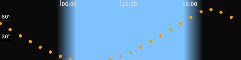 | Aufgang | 10:30 Uhr im Norden (αAz = 17,9°) |