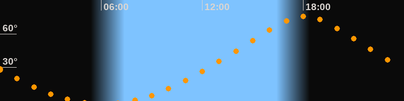 | Höchster Stand (Kulmination) | 18:05 Uhr (h = 75,8°) |