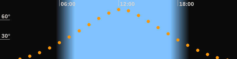 | Höchster Stand (Kulmination) | 12:15 Uhr (h = 75,8°) |