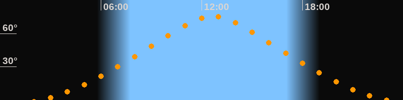 | Höchster Stand (Kulmination) | 12:40 Uhr (h = 75,8°) |