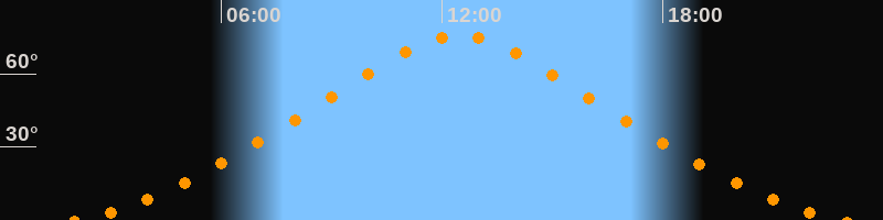 | Höchster Stand (Kulmination) | 12:28 Uhr (h = 75,8°) |