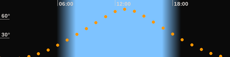 | Höchster Stand (Kulmination) | 13:02 Uhr (h = 75,8°) |