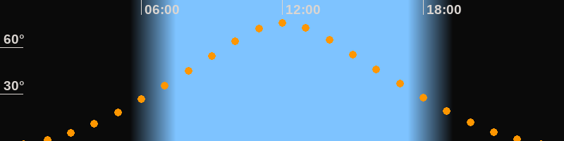 | Höchster Stand (Kulmination) | 12:03 Uhr (h = 75,8°) |