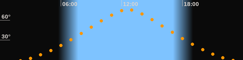 | Höchster Stand (Kulmination) | 12:35 Uhr (h = 75,8°) |