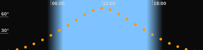 | Höchster Stand (Kulmination) | 12:05 Uhr (h = 75,8°) |
