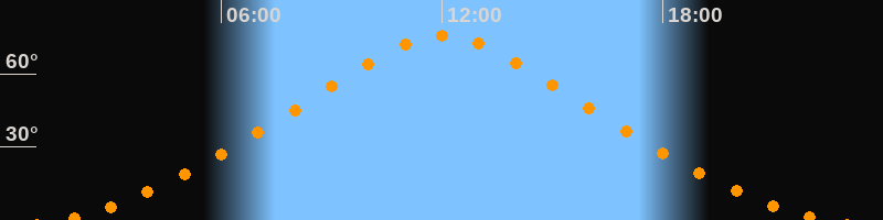 | Höchster Stand (Kulmination) | 12:02 Uhr (h = 75,8°) |