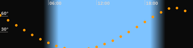 | Aufgang | 11:10 Uhr im Norden (αAz = 17,9°) |