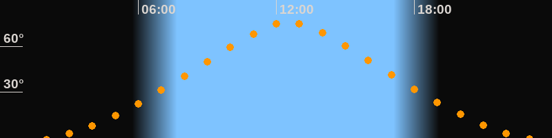 | Höchster Stand (Kulmination) | 12:32 Uhr (h = 75,8°) |