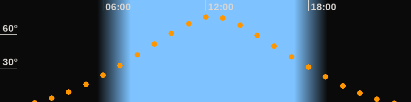 | Höchster Stand (Kulmination) | 12:24 Uhr (h = 75,8°) |
