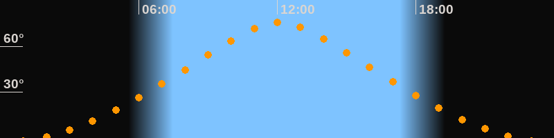 | Höchster Stand (Kulmination) | 12:04 Uhr (h = 75,8°) |