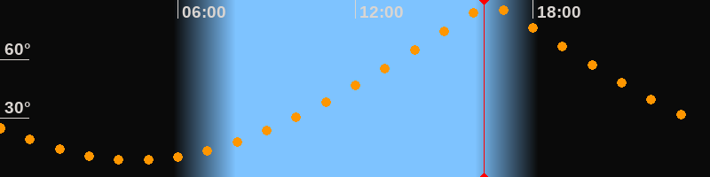 | Höchster Stand (Kulmination) | 16:35 Uhr (h = 87,3°) |