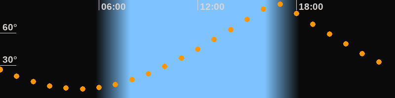 | Höchster Stand (Kulmination) | 16:46 Uhr (h = 87,3°) |
