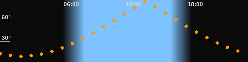 | Höchster Stand (Kulmination) | 14:03 Uhr (h = 87,3°) |