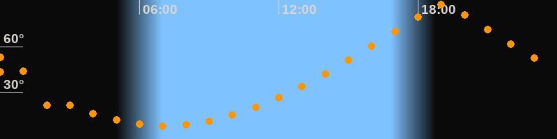 | Höchster Stand (Kulmination) | 19:04 Uhr (h = 87,3°) |