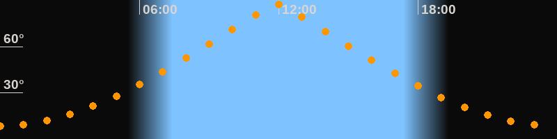 | Höchster Stand (Kulmination) | 11:55 Uhr (h = 87,3°) |