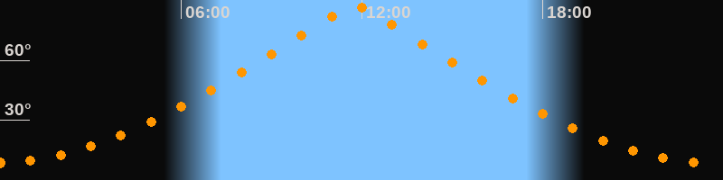 | Höchster Stand (Kulmination) | 11:46 Uhr (h = 87,3°) |