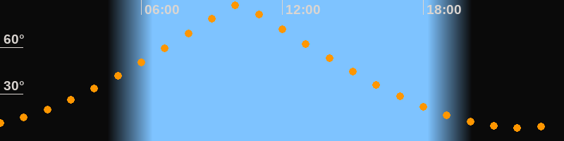 | Höchster Stand (Kulmination) | 10:08 Uhr (h = 87,3°) |
