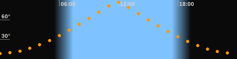 | Höchster Stand (Kulmination) | 11:52 Uhr (h = 87,3°) |