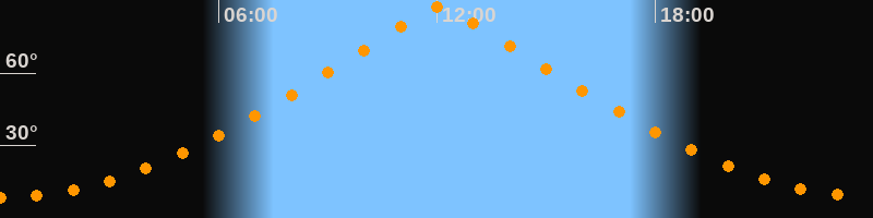 | Höchster Stand (Kulmination) | 12:05 Uhr (h = 87,3°) |
