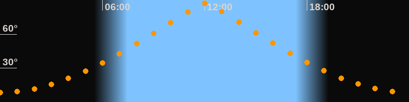 | Höchster Stand (Kulmination) | 12:01 Uhr (h = 87,3°) |