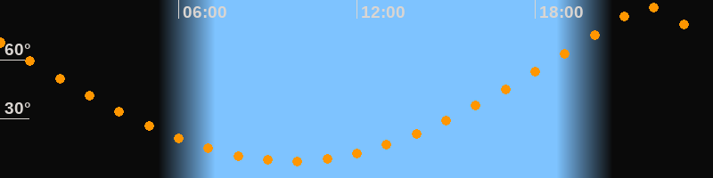 | Höchster Stand (Kulmination) | 21:46 Uhr (h = 87,3°) |