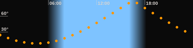 | Höchster Stand (Kulmination) | 16:30 Uhr (h = 87,3°) |