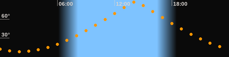 | Höchster Stand (Kulmination) | 14:09 Uhr (h = 87,3°) |
