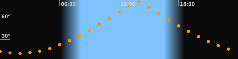 | Höchster Stand (Kulmination) | 13:53 Uhr (h = 87,3°) |