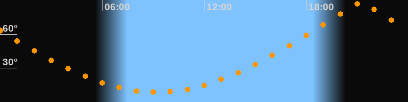 | Höchster Stand (Kulmination) | 21:11 Uhr (h = 87,3°) |