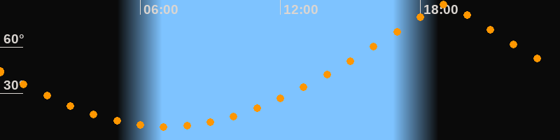 | Höchster Stand (Kulmination) | 19:05 Uhr (h = 87,3°) |