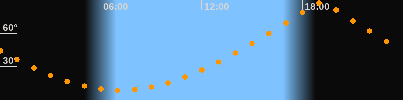 | Höchster Stand (Kulmination) | 19:06 Uhr (h = 87,3°) |