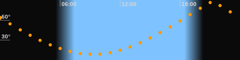 | Höchster Stand (Kulmination) | 21:13 Uhr (h = 87,3°) |
