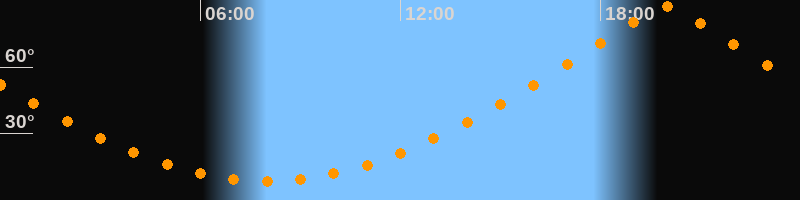 | Höchster Stand (Kulmination) | 19:59 Uhr (h = 87,3°) |