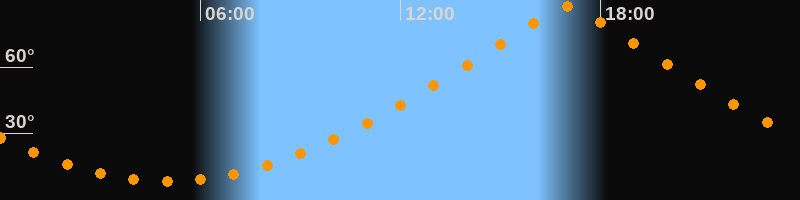 | Höchster Stand (Kulmination) | 17:01 Uhr (h = 87,3°) |