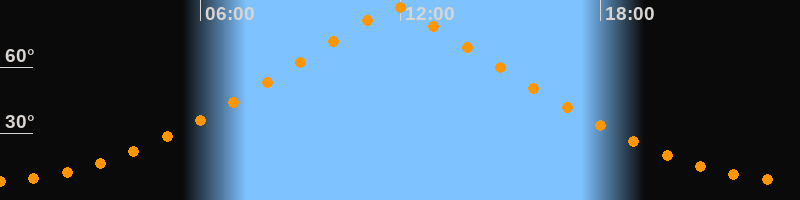 | Höchster Stand (Kulmination) | 11:51 Uhr (h = 87,3°) |